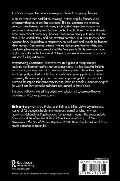 Weaponizing Conspiracy Theories serves as a guide to recognize and navigate the distorted realities reshaping our world. It offers essential insights into the complex dynamics of 21st-century global politics. The author argues that to properly understand the functions of contemporary politics, into which conspiracy theories and populism are now deeply integrated, we must both examine the impact that conspiracy theories have on people's understandings of the world and how populist politicians can appeal to these beliefs.