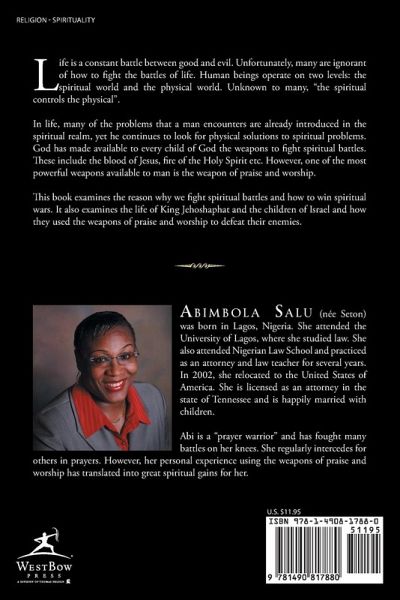Life is a constant battle between good and evil. Unfortunately, many are ignorant of how to fight the battles of life. Human beings operate on two levels: the spiritual world and the physical world. Unknown to many, "the spiritual controls the physical". In life, many of the problems that a man encounters are already introduced in the spiritual realm, yet he continues to look for physical solutions to spiritual problems. God has made available to every child of God the weapons to fight spiritual battles. These include the blood of Jesus, fire of the Holy Spirit etc. However, one of the most powerful weapons available to man is the weapon of praise and worship. This book examines the reason why we fight spiritual battles and how to win spiritual wars. It also examines the life of King Jehoshaphat and the children of Israel and how they used the weapons of praise and worship to defeat their enemies.