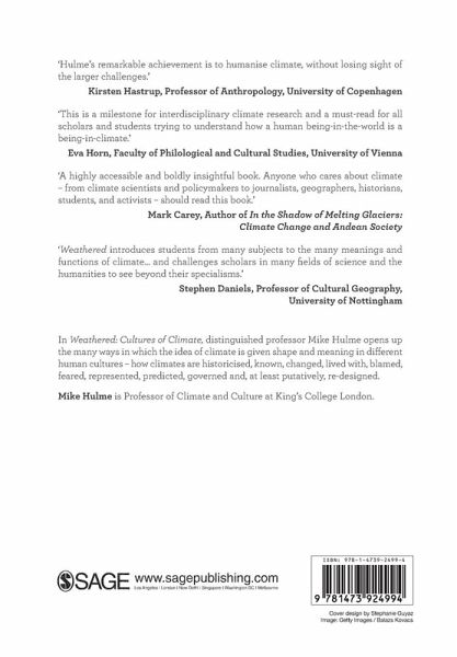 In Weathered: Cultures of Climate, distinguished professor Mike Hulme opens up the many ways in which the idea of climate is given shape and meaning in different human cultures how climates are historicized, known, changed, lived with, blamed, feared, represented, predicted, governed and, at least putatively, re-designed.