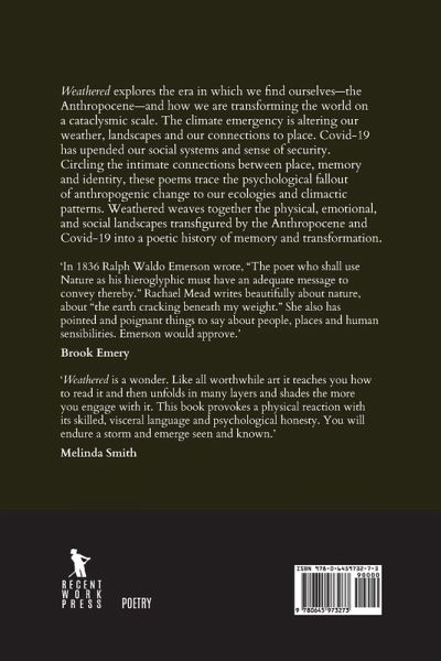 Weathered explores the era in which we find ourselves - the Anthropocene - and how we are transforming the world on a cataclysmic scale. The climate emergency is altering our weather, landscapes and our connections to place. Covid-19 has upended our social systems and sense of security. Circling the intimate connections between place, memory and identity, these poems trace the psychological fallout of anthropogenic change to our ecologies and climactic patterns. Weathered weaves together the physical, emotional, and social landscapes transfigured by the Anthropocene and Covid-19 into a poetic history of memory and transformation.