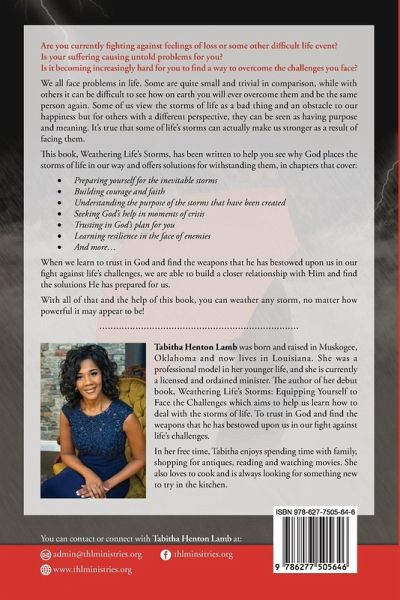 We all face problems in life. Some are quite small and trivial in comparison, while with others it can be difficult to see how on earth you will ever overcome them and be the same person again. Some of us view the storms of life as a bad thing and an obstacle to our happiness but for others with a different perspective, they can be seen as having purpose and meaning. It's true that some of life's storms can actually make us stronger as a result of facing them. This book, Weathering Life's Storms, has been written to help you see why God places the storms of life in our way and offers solutions for withstanding them.