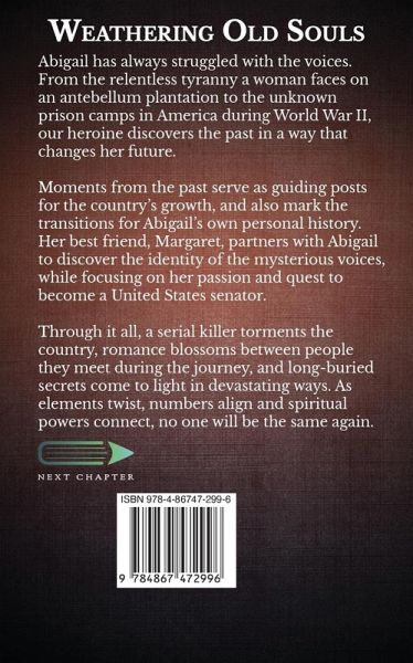 Abigail has always struggled with the voices. From the relentless tyranny a woman faces on an antebellum plantation to the unknown prison camps in America during World War II, our heroine discovers the past in a way that changes her future. Moments from the past serve as guiding posts for the country's growth, and also mark the transitions for Abigail's own personal history. Her best friend, Margaret, partners with Abigail to discover the identity of the mysterious voices, while focusing on her passion and quest to become a United States senator. Through it all, a serial killer torments the country, romance blossoms between people they meet during the journey, and long-buried secrets come to light in devastating ways. As elements twist, numbers align and spiritual powers connect, no one will be the same again.