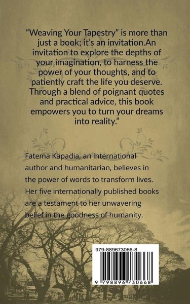 "Weaving your tapestry - unleashing your inner creator "is more than just a book; it's an invitation. An invitation to explore the depths of your imagination, to harness the power of your thoughts, and to patiently craft the life you deserve. Through a blend of poignant quotes and practical advice, this book empowers you to turn your dreams into reality."p