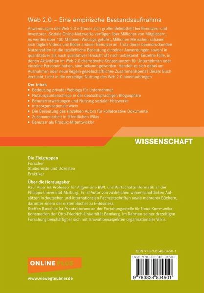 Anwendungen des Web 2.0 erfreuen sich großer Beliebtheit bei Benutzern und Investoren. MySpace, YouTube, Second Life und andere Anwendungen verfügen über Millionen von Benutzern, es werden über 70 Millionen Weblogs geführt, aber die tatsächliche Bedeutung einzelner Anwendungen sowohl in quantitativer als auch in qualitativer Hinsicht ist noch unbekannt. Einzelne Fälle, in denen Aktivitäten im Web 2.0 dramatische Konsequenzen für Unternehmen oder einzelne Personen hatten, sind bekannt geworden. Ob es sich dabei um Ausnahmen oder neue Regeln handelt ist unbekannt. Deswegen versucht dieses Buch, Licht in die derzeitige Nutzung des Web 2.0 hineinzubringen.