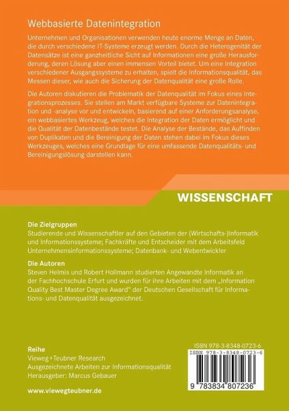 Die Autoren diskutieren die Problematik der Datenqualität im Fokus eines Integrationsprozesses. Sie stellen am Markt verfügbare Systeme zur Datenintegration und -analyse vor und entwickeln, basierend auf einer Anforderungsanalyse, ein webbasiertes Werkzeug, welches die Integration der Daten ermöglicht und die Qualität der Datenbestände testet. Die Analyse der Bestände, das Auffinden von Duplikaten und die Bereinigung der Daten stehen dabei im Fokus dieses Werkzeuges, welches eine Grundlage für eine umfassende Datenqualitäts- und Bereinigungslösung darstellen kann.