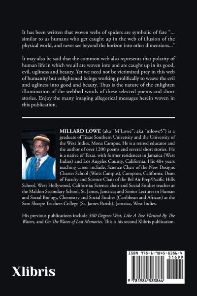 It has been written that woven webs of spiders are symbolic of fate "...similar to us humans who get caught up in the web of illusion of the physical world, and never see beyond the horizon into other dimensions..." It may also be said that the common web also represents that polarity of human life in which we all are woven into and are caught up in its good, evil, ugliness and beauty. Yet we need not be victimized prey in this web of humanity but enlightened beings working prolifically to weave the evil and ugliness into good and beauty. Thus is the nature of the enlighten illumination of the webbed words of these selected poems and short stories. Enjoy the many imaging allegorical messages herein woven in this publication.