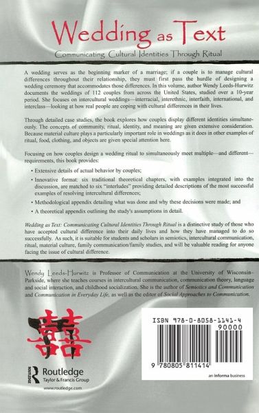 This volume, using intercultural weddings as its focus, examines what occurs when the signs & codes of different cultures come into contact & influence one another. For scholars & advanced level students of interpersonal, nonverbal, & intercultural comm.