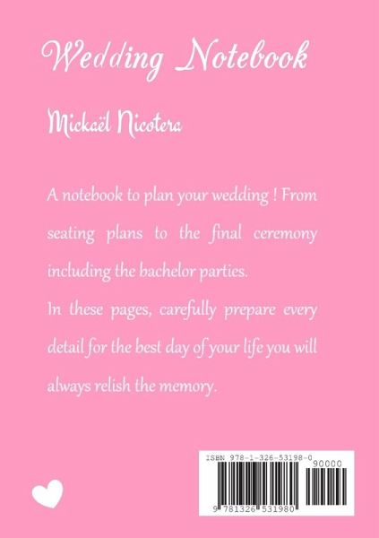 A notebook to plan your wedding ! From seating plans to the final ceremony including the bachelor parties. In these pages, carefully prepare every detail for the best day of your life you will always relish the memory.