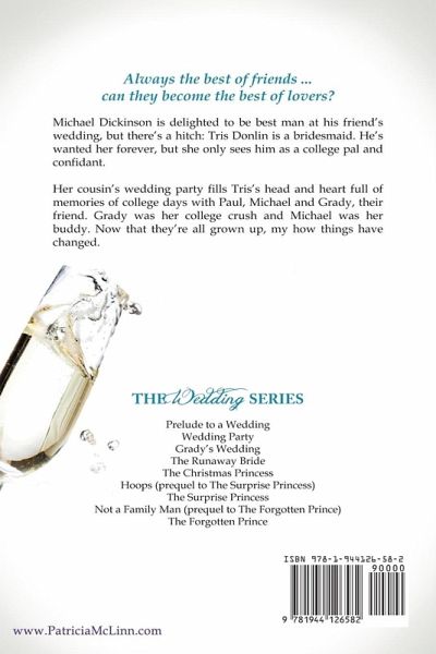 You are cordially invited to join the wedding celebration as college friends embark on the greatest education of all -- falling in love, finding the perfect bride, and becoming the happiest grooms around.Always the best of friends ... can they become the best of lovers?Michael Dickinson is delighted to be best man at his friend's wedding - but there's one complication. Tris Donlin is a bridesmaid. He's wanted her for longer than he cares to remember, but to her, he's just good old Michael - college pal, confidant, best buddy ... Would a few days of wedding celebration let him finally get her out of his system once and for all?Her cousin Paul's wedding party has Tris's head and heart full of memories of college days with him, Michael and their friend Grady. Grady was her college crush and Michael was her buddy. Now that they're all grown up, my how things have changed.She's certain she's found the best man for her ... if only she can convince him. 5-Star Praise for Wedding Party: "Years of friendship and unspoken desires finally come to the surface. ... What to say about book two but amazing." ... "Fun, heartwarming." ... "Feels like they are REAL people that you could know." Readers React to The Wedding Series:"A wonderful series that will make you laugh and cry. Each page is filled with love that will eventually come to the people who so need it. A must read!" - 5-star review"Perfect. The characters were multi-dimensional and played off each other in warm, thoughtful, loving ways. Each couple faced a different situation and overcame their obstacles together and with the insightful comments of their friends. ... Heart-warming." - 5-star review "Fun and serious all at the same time. Love how the friends intertwine and add new along the way. It was refreshing to read the different stories and having them all come together. Really enjoyed this series!" - 5-star review"Full of warmth, understanding of human nature, and great characters. They are connected, following the lives of college friends, and by the time you are finished, you feel as if you are a part of their extended circle. A dash of sex here, but not to the point that it overshadows the well thought out storylines. Definitely a feel good experience." -- 5-star reviewGet all the books in Patricia McLinn's Wedding Series today!Prelude to a WeddingWedding PartyGrady's WeddingThe Runaway BrideThe Christmas PrincessHoopsThe Surprise PrincessNot a Family ManThe Forgotten Prince