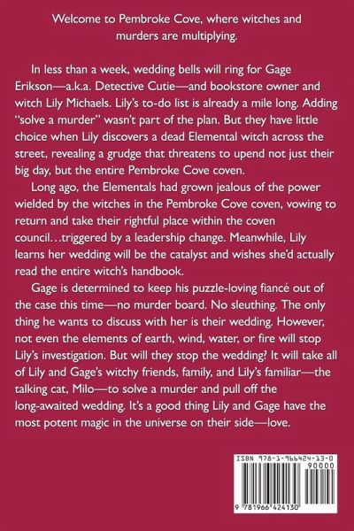 Enjoy this witty, small town paranormal, cozy mystery by award-winning and bestselling author Lucinda Race. Welcome to Pembroke Cove, where witches and murders are multiplying... In less than a week, wedding bells will ring for Gage Erikson-a.k.a. Detective Cutie-and bookstore owner and witch Lily Michaels. Lily's to-do list is already a mile long. Adding "solve a murder" wasn't part of the plan. But they have little choice when Lily discovers a dead Elemental witch across the street, revealing a grudge that threatens to upend not just their big day, but the entire Pembroke Cove coven. Long ago, the Elementals had grown jealous of the power wielded by the witches in the Pembroke Cove coven, vowing to return and take their rightful place within the coven council...triggered by a leadership change. Meanwhile, Lily learns her wedding will be the catalyst and wishes she'd actually read the entire witch's handbook. Gage is determined to keep his puzzle-loving fiancé out of the case this time-no murder board. No sleuthing. The only thing he wants to discuss with her is their wedding. However, not even the elements of earth, wind, water, or fire will stop Lily's investigation. But will they stop the wedding? It will take all of Lily and Gage's witchy friends, family, and Lily's familiar-the talking cat, Milo-to solve a murder and pull off the long-awaited wedding. It's a good thing Lily and Gage have the most potent magic in the universe on their side-love. *** Visit Pembroke Cove in this charming supernatural tale where bookshops meet broomsticks and Lily and Gage will need more than magical abilities to make it to "I do." Weddings & Wands is the twelfth novel in the A Book Store Cozy Mystery Series; although each book can be read as a standalone, it is best to read them in order. It is a humorous, small town, cozy mystery that guarantees the culprit is caught. Happy reading!