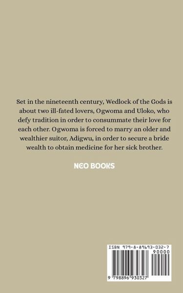 Set in the nineteenth century, Wedlock of the Gods is about two ill-fated lovers, Ogwoma and Uloko, who defy tradition in order to consummate their love for each other. Ogwoma is forced to marry an older and wealthier suitor, Adigwu, in order to secure a bride wealth to obtain medicine for her sick brother.