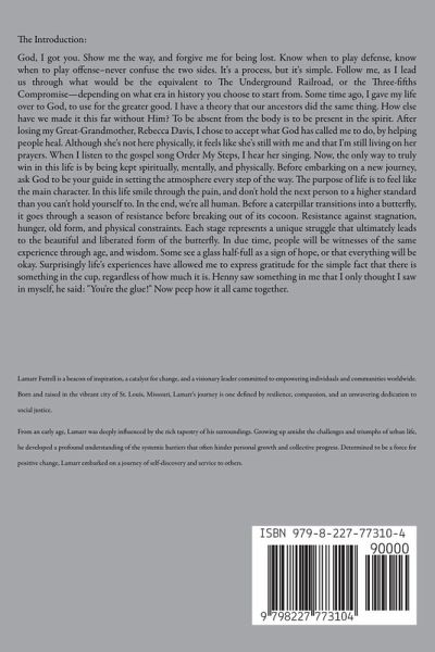 The Introduction God, I got you. Show me the way, and forgive me for being lost. Know when to play defense, know when to play offense-never confuse the two sides. It's a process, but it's simple. Follow me, as I lead us through what would be the equivalent to The Underground Railroad, or the Three-fifths Compromise-depending on what era in history you choose to start from. Some time ago, I gave my life over to God, to use for the greater good. I have a theory that our ancestors did the same thing. How else have we made it this far without Him? To be absent from the body is to be present in the spirit. After losing my Great-Grandmother, Rebecca Davis, I chose to accept what God has called me to do, by helping people heal. Although she's not here physically, it feels like she's still with me and that I'm still living on her prayers. When I listen to the gospel song Order My Steps, I hear her singing. Now, the only way to truly win in this life is by being kept spiritually, mentally, and physically. Before embarking on a new journey, ask God to be your guide in setting the atmosphere every step of the way. The purpose of life is to feel like the main character. In this life smile through the pain, and don't hold the next person to a higher standard than you can't hold yourself to. In the end, we're all human. Before a caterpillar transitions into a butterfly, it goes through a season of resistance before breaking out of its cocoon. Resistance against stagnation, hunger, old form, and physical constraints. Each stage represents a unique struggle that ultimately leads to the beautiful and liberated form of the butterfly. In due time, people will be witnesses of the same experience through age, and wisdom. Some see a glass half-full as a sign of hope, or that everything will be okay. Surprisingly life's experiences have allowed me to express gratitude for the simple fact that there is something in the cup, regardless of how much it is. Henny saw something in me that I only thought I saw in myself, he said: "You're the glue!" Now peep how it all came together.