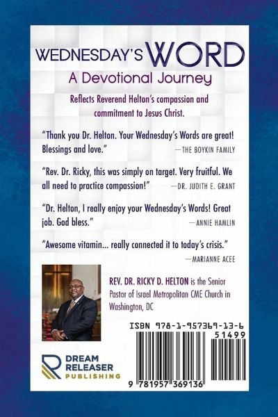 Wednesday's Word A Devotional Journey Reflects Reverend Helton's compassion and commitment to Jesus Christ. "Thank you Dr. Helton. Your Wednesday's Words are great! Blessings and love."-The Boykin Family "Rev. Dr. Ricky, this was simply on target. Very fruitful. We all need to practice compassion!"-Dr. Judith E. Grant "Dr. Helton, I really enjoy your Wednesday's Words! Great job. God bless."-Annie Hamlin "Awesome vitamin... really connected it to today's crisis."-Marianne Acee