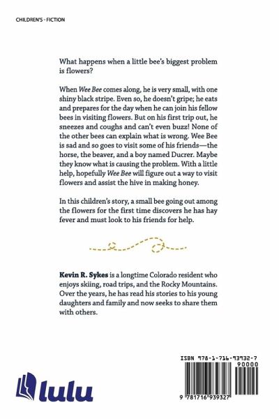 What happens when a little bee's biggest problem is flowers? When Wee Bee comes along, he is very small, with one shiny black stripe. Even so, he doesn't gripe; he eats and prepares for the day when he can join his fellow bees in visiting flowers. But on his first trip out, he sneezes and coughs and can't even buzz! None of the other bees can explain what is wrong. Wee Bee is sad and so goes to visit some of his friends-the horse, the beaver, and a boy named Ducrer. Maybe they know what is causing the problem. With a little help, hopefully Wee Bee will figure out a way to visit flowers and assist the hive in making honey. In this children's story, a small bee going out among the flowers for the first time discovers he has hay fever and must look to his friends for help.