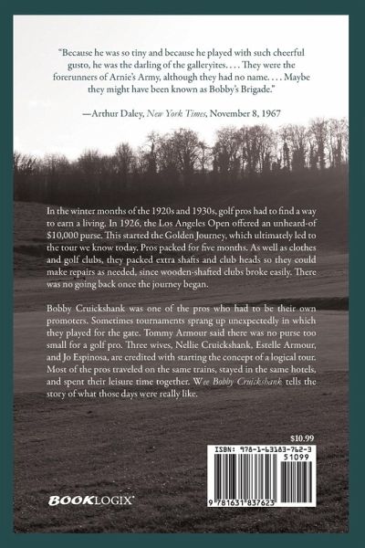 "Because he was so tiny and because he played with such cheerful gusto, he was the darling of the galleryites. . . . They were the forerunners of Arnie's Army, although they had no name. . . . Maybe they might have been known as Bobby's Brigade." -Arthur Daley, New York Times, November 8, 1967 In the winter months of the 1920s and 1930s, golf pros had to find a way to earn a living. In 1926, the Los Angeles Open offered an unheard-of $10,000 purse. This started the Golden Journey, which ultimately led to the tour we know today. Pros packed for five months. As well as clothes and golf clubs, they packed extra shafts and club heads so they could make repairs as needed, since wooden-shafted clubs broke easily. There was no going back once the journey began.Bobby Cruickshank was one of the pros who had to be their own promoters. Sometimes tournaments sprang up unexpectedly in which they played for the gate. Tommy Armour said there was no purse too small for a golf pro. Three wives, Nellie Cruickshank, Estelle Armour, and Jo Espinosa, are credited with starting the concept of a logical tour. Most of the pros traveled on the same trains, stayed in the same hotels, and spent their leisure time together. Wee Bobby Cruickshank tells the story of what those days were really like.