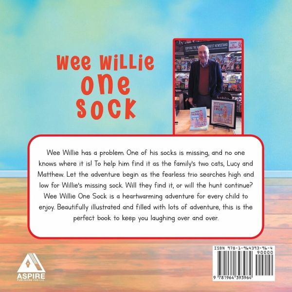 Wee Willie has a problem. One of his socks is missing, and no one knows where it is! To help him find it as the family's two cats, Lucy and Matthew. Let the adventure begin as the fearless trio searches high and low for Willie's missing sock. Will they find it, or will the hunt continue? Wee Willie One Sock is a heartwarming adventure for every child to enjoy. Beautifully illustrated and filled with lots of adventure, this is the perfect book to keep you laughing over and over.