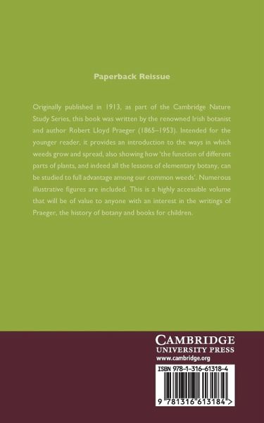 Originally published in 1913, as part of the Cambridge Nature Study Series, this book was written by the renowned Irish botanist and author Robert Lloyd Praeger (1865-1953). Intended for the younger reader, it provides an introduction to the ways in which weeds grow and spread, also showing how 'the function of different parts of plants, and indeed all the lessons of elementary botany, can be studied to full advantage among our common weeds'. Numerous illustrative figures are included. This is a highly accessible volume that will be of value to anyone with an interest in the writings of Praeger, the history of botany and books for children.