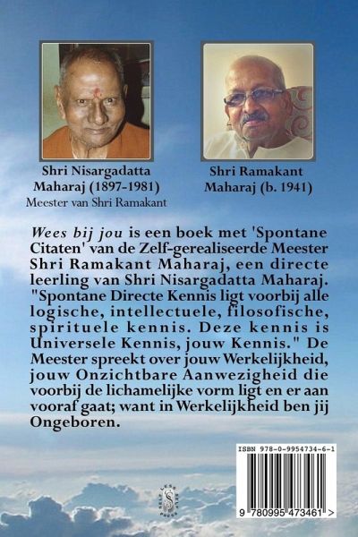 Wees bij jou is een boek met 'Spontane Citaten' van de Zelf-gerealiseerde Meester Shri Ramakant Maharaj, een directe leerling van Shri Nisargadatta Maharaj. "Spontane Directe Kennis ligt voorbij alle logische, intellectuele, filosofische, spirituele kennis. Deze kennis is Universele Kennis, jouw Kennis."