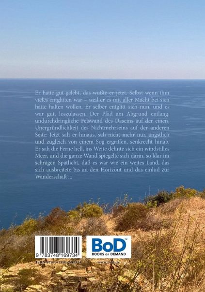 Er hatte gut gelebt, das wußte er jetzt. Selbst wenn ihm vieles entglitten war - weil er es mit aller Macht bei sich hatte halten wollen. Er selber entglitt sich nun, und es war gut, loszulassen. Der Pfad am Abgrund entlang, undurchdringliche Felswand des Daseins auf der einen, Unergründlichkeit des Nichtmehrseins auf der anderen Seite: Jetzt sah er hinaus, sah nicht mehr nur, ängstlich und zugleich von einem Sog ergriffen, senkrecht hinab. Er sah die Ferne hell, ins Weite dehnte sich ein windstilles Meer, und die ganze Wand spiegelte sich darin, so klar im schrägen Spätlicht, daß es war wie ein weites Land, das sich ausbreitete bis an den Horizont und das einlud zur Wanderschaft ...