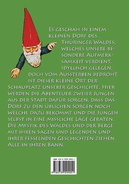 Es geschah in einem kleinen Dorf des Thüringer Waldes, der Schauplatz unserer Geschichte. Wo die Legenden ihren Ursprung haben, das Magische heimisch und wohin der Schleier der Zivilisation noch nicht vorgedrungen ist. Wir begegnen Menschen, die im Schweiße ihres Angesichts das tägliche Brot verdienen und die Alten in gebückter Haltung die Last der arbeitsreichen und leidvollen Jahre auf ihren Schultern tragen. Aber wir begegnen hier auch finsteren Gestalten, die im Thüringer Wald ihr Unwesen treiben und die Ängste der Waldbewohner beflügeln. Zwei Jungen, die durch ihre ungezogenen Handlungen in eine missliche Lage geraten, aus der es keinen Ausweg mehr zu geben scheint. Eine spannende Geschichte über die Entstehung der Zwerge.
