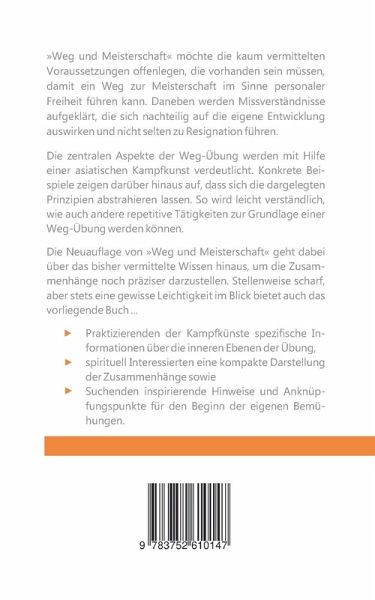»Weg und Meisterschaft« möchte die kaum vermittelten Voraussetzungen offenlegen, die vorhanden sein müssen, damit ein Weg zur Meisterschaft im Sinne personaler Freiheit führen kann. Daneben werden Missverständnisse aufgeklärt, die sich nachteilig auf die eigene Entwicklung auswirken und nicht selten zu Resignation führen.Die zentralen Aspekte der Weg-Übung werden mit Hilfe einer asiatischen Kampfkunst verdeutlicht. Konkrete Beispiele zeigen darüber hinaus auf, dass sich die dargelegten Prinzipien abstrahieren lassen. So wird leicht verständlich, wie auch andere repetitive Tätigkeiten zur Grundlage einer Weg-Übung werden können.Die Neuauflage von »Weg und Meisterschaft« geht dabei über das bisher vermittelte Wissen hinaus, um die Zusammenhänge noch präziser darzustellen. Stellenweise scharf, aber stets eine gewisse Leichtigkeit im Blick bietet auch das vorliegende Buch Praktizierenden der Kampfkünste spezifische Informationen über die inneren Ebenen der Übung, spirituell Interessierten eine kompakte Darstellung der Zusammenhänge sowie Suchenden inspirierende Hinweise und Anknüpfungspunkte für den Beginn der eigenen Bemühungen.