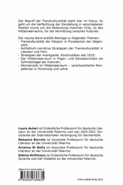 Der Begriff der Transkulturalität steht hier im Fokus. Es geht um die Verflechtung der Darstellung in verschiedenen Medien sowie um die Bedeutung mancher Orte, so des Mittelmeerraums, für die Vermittlung zwischen Kulturen.