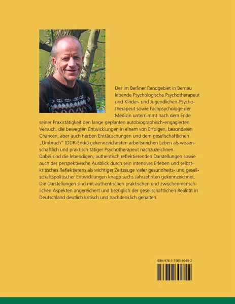 Der im Berliner Randgebiet in Bernau bei Berlin lebende Psychologische Psychotherapeut, und Kinder- und Jugendlichen-Psychotherapeut sowie Fachpsychologe der Medizin unternimmt nach dem Ende seiner Praxistätigkeit den lange geplanten autobiographisch-engagierten Versuch, die bewegten Entwicklungen in einem von Erfolgen, besonderen Chancen, aber auch herben Enttäuschungen und dem gesellschaftlichen "Umbruch" (DDR-Ende) gekennzeichneten arbeitsreichen Leben als wissenschaftlich und praktisch tätiger Psychotherapeut nachzuzeichnen. Dabei sind die lebendigen, authentisch reflektierenden Darstellungen sowie auch der perspektivische Ausblick durch sein intensives Erleben und selbstkritisches Reflektierens als wichtiger Zeitzeuge vieler gesundheits- und gesellschaftspolitischer Entwicklungen knapp sechs Jahrzehnten gekennzeichnet. Die Darstellungen sind mit authentischen praktischen und zwischenmenschlichen Aspekten angereichert und bezüglich der gesellschaftlichen Realität in Deutschland deutlich kritisch und nachdenklich gehalten.