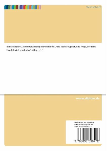 Keine Frage, der Faire Handel wird gesellschaftsfähig...was aber verbirgt sich hinter dem Begriff und ist der faire Handel wirklich so fair, wie es die Darstellungen der Organisationen vermuten lassen? Was bedeutet Fairer Handel für die Produzenten und welchen Schwierigkeiten sehen sich diese gegenüber auf ihrem Weg in den Fairen Handel? Kann der Faire Handel tatsächlich als Alternative zur bislang propagierten marktwirtschaftlichen Entwicklung dienen und den Balanceakt zwischen einer Öffnung für die Weltwirtschaft einerseits und gleichzeitiger Wahrung kultureller Identitäten und Traditionen andererseits leisten?