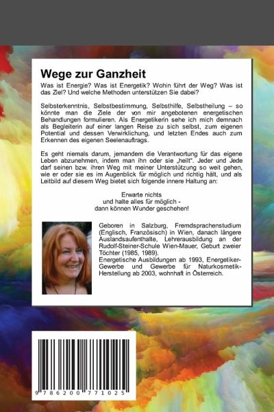 Was ist Energie? Was ist Energetik? Wohin führt der Weg? Was ist das Ziel? Und welche Methoden unterstützen Sie dabei?Selbsterkenntnis, Selbstbestimmung, Selbsthilfe, Selbstheilung - so könnte man die Ziele der von mir angebotenen energetischen Behandlungen formulieren. Als Energetikerin sehe ich mich demnach als Begleiterin auf einer langen Reise zu sich selbst, zum eigenen Potential und dessen Verwirklichung, und letzten Endes auch zum Erkennen des eigenen Seelenauftrags.Es geht niemals darum, jemandem die Verantwortung für das eigene Leben abzunehmen, indem man ihn oder sie "heilt". Jeder und Jede darf seinen bzw. ihren Weg mit meiner Unterstützung so weit gehen, wie er oder sie es im Augenblick für möglich und richtig hält, und als Leitbild auf diesem Weg bietet sich folgende innere Haltung an:Erwarte nichtsund halte alles für möglich -dann können Wunder geschehen!