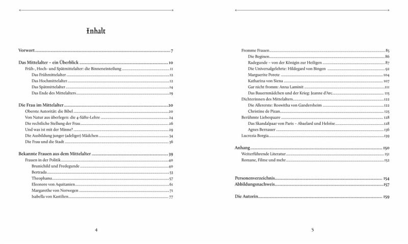 Sie alle werden in einzelnen Porträts dargestellt, so dass sich am Ende ein anschauliches Bild weiblicher Lebensläufe aus den 1000 Jahren ergibt, die wir heute als das »mittlere Alter« zusammenfassen.