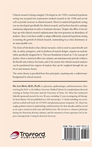 Clinical research is being strangled. Developed in the 1920's, statistical hypothesis testing was accepted into mainstream medical research in the 1950s and served well to provide structure to clinical research. However statistical hypothesis testing was not developed specifically for clinical research, and has been forced to undergo continuous adaptations in order to maintain relavance. Despite this effort, it has not kept up with clinical research sophistication that now generates an abundance of analyses. Since it has been unable to adapt sufficiently, statistical hypothesis testing is stunting the growth of clinical research, maintaining its p-value dominance at an unacceptable cost. The thesis of this book is that clinical resesarch, with its need to assess benefit and risk, its safety perogative, and its plethora of resarch designs, requires an analysis rubric specifically designed for it. This new foundation is based on 1) the concept of duality, where a statistical effect size estimate can simultaneously provide evidence for benefit and evidence for harm, and 2) the notion that clinical research analyses can be partitioned into regions of analysis that can be weighted through the use of set and measure theory. The entire theory is provided from first principals, requiring only a rudimentary background in clincal research.