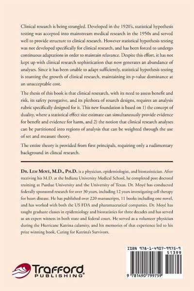 Clinical research is being strangled. Developed in the 1920's, statistical hypothesis testing was accepted into mainstream medical research in the 1950s and served well to provide structure to clinical research. However statistical hypothesis testing was not developed specifically for clinical research, and has been forced to undergo continuous adaptations in order to maintain relavance. Despite this effort, it has not kept up with clinical research sophistication that now generates an abundance of analyses. Since it has been unable to adapt sufficiently, statistical hypothesis testing is stunting the growth of clinical research, maintaining its p-value dominance at an unacceptable cost. The thesis of this book is that clinical resesarch, with its need to assess benefit and risk, its safety perogative, and its plethora of resarch designs, requires an analysis rubric specifically designed for it. This new foundation is based on 1) the concept of duality, where a statistical effect size estimate can simultaneously provide evidence for benefit and evidence for harm, and 2) the notion that clinical research analyses can be partitioned into regions of analysis that can be weighted through the use of set and measure theory. The entire theory is provided from first principals, requiring only a rudimentary background in clincal research.