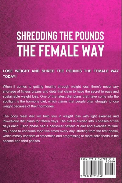 LOSE WEIGHT AND SHRED THE POUNDS THE FEMALE WAY TODAY! When it comes to getting healthy through weight loss, there's never any shortage of fitness crazes and diets that claim to have the secret to easy and sustainable weight loss. One of the latest diet plans that have come into the spotlight is the hormone diet, which claims that people often struggle to lose weight because of their hormones. The body reset diet will help you in weight loss with light exercise and low-calorie diet plans for fifteen days. The diet is divided into 3 phases of five days each. Each phase had a particular pattern of diet and exercise routine. You need to consume food five times every day, starting from the first phase, which mostly consists of smoothies and progressing to more solid foods in the second and third phases. In This Book You Will Learn: ¿ What Is Emotional Eating? ¿ The Neuroscience of Brain Chemicals and Food As a Reward ¿ Psychological and Emotional Triggers ¿ How to Stop Binge Eating, Bulimia, and Emotional Eating ¿ Making Healthier Decisions Using Intuitive Eating ¿ The Benefits of Intuitive Eating ¿ How to Make These New Choices a Habit ¿ 30-Day Meal Plan ¿ How to Reset Your Body? ¿ Science Behind Metabolism Reset ¿ How You Can Matter to Yourself Amazing Recipes Include: ¿ Feta, mushroom and spinach, omelet. ¿ Oven-baked tempeh with broccoli and cauliflower rice. ¿ Chicken Caesar salad- tofu and romaine lettuce, parmesan ¿ Herb and Goat Cheese Omelet ¿ Mediterranean Cod ¿ Brussels Sprouts With Honey Mustard Chicken ¿ Kale and Sweet Potato Frittata ¿ Dopamine Delight Smoothie ¿ Maca Mango Smoothie ¿ Walnut, Ginger, and Pineapple Oatmeal ¿ Chocolate Pomegranate Truffles Be gentle with yourself throughout this process as it will be uncomfortable at times and will require strength. This book will help you through it, as you are not alone. Pick up your copy of the book right now by clicking the BUY NOW button at the top of this page!