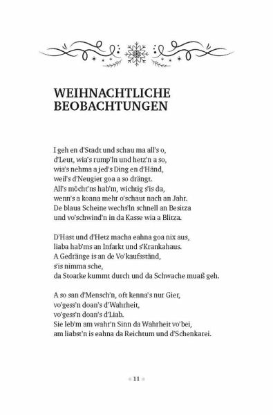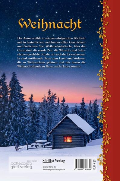 Geschichten und Gedichte vorgelesen zu bekommen ist immer ein großes Vergnügen, ganz besonders aber zur Weihnachtszeit. Pius Detterbeck erzählt in seinem erfolgreichen Büchlein mal in besinnlichen, mal humorvollen Geschichten und Gedichten über Weihnachtsbräuche, das Christkind, die staade Zeit, die Wünsche und Sehnsüchte nicht nur der Kinder sondern auch der Erwachsenen. Es sind anrührende Texte zum Lesen und Vorlesen, die zu Weihnachten gehören und mit denen die Weihnachtsfreude zu Ihnen nach Hause kommt. Genießen Sie mit diesem Büchlein gemütliche Abende im Kreis der Familie, lesen Sie vor, lassen Sie sich vorlesen und tauchen Sie ein in weihnachtliche Geschichten, die Kinderaugen zum Glänzen bringen und die Wartezeit bis Heilig Abend besinnlich macht.