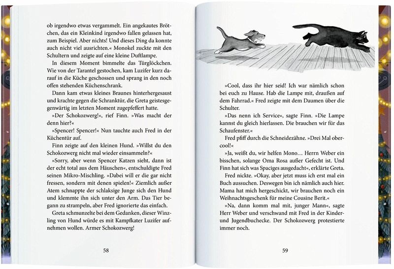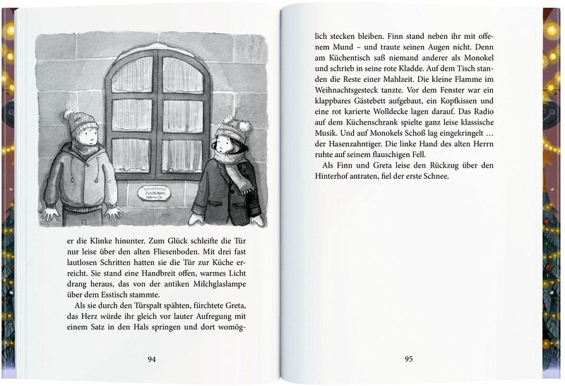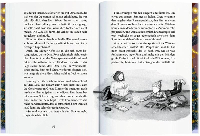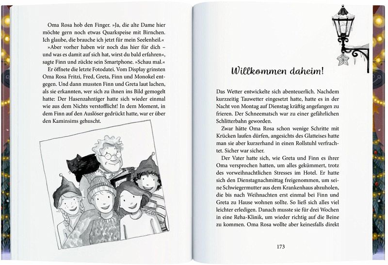 Als Oma Rosa auf dem Weihnachtsmarkt stürzt, kümmern sich Finn und Greta um ihren Buchladen - mit allerhand kreativen Ideen und mithilfe des schusseligen Mitarbeiters Monokel, den ein Geheimnis zu umgeben scheint.