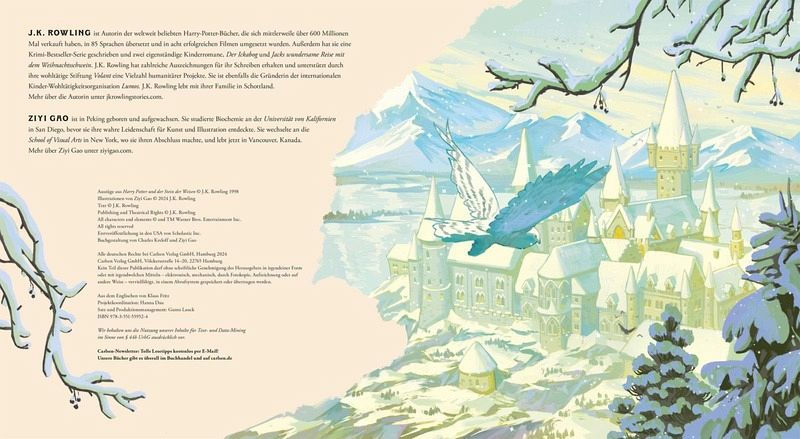 Das festlich illustrierte Buch über diese stimmungsvollen Weihnachstage vereint Originaltexte aus J.K. Rowlings erstem Harry-Potter-Band und die prächtigen Illustrationen von Ziyi Gao. Zum Staunen, Entdecken und Schmökern für jedes Alter!