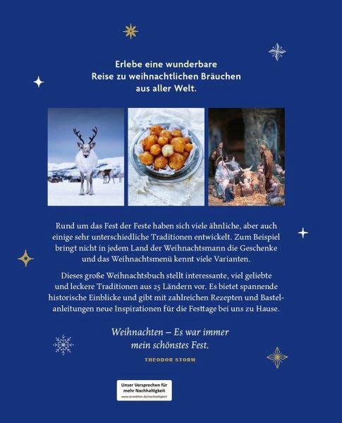 Das Fest der Liebe hier und dort: Schöne Texte, inspirierende Gedanken, kreative Ideen und viel Wissenswertes rund um Geschichte und BrauchtumNostalgie pur: Stimmungsvolle Wintermotive aus aller Welt laden dazu ein, zu schmökern und Neues kennenzulernenZeitlos schöne Weihnachtsdeko: Das opulente Weihnachtsbuch hat das Zeug zum Klassiker - ein Hingucker für den Familientisch und jedes Jahr aufs Neue eine FreudePerfekt als Weihnachtsgeschenk: Ideal für Familien und alle, die gerne Weihnachten zu Hause feiern und trotzdem in Gedanken rund um die Welt reisen