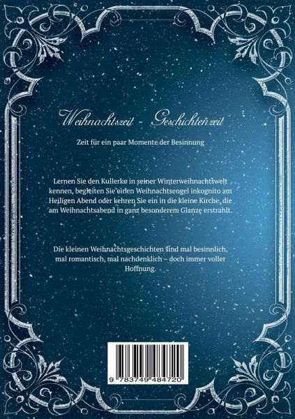 Weihnachtszeit - Geschichtenzeit - Zeit für ein paar Momente der BesinnungLernen Sie den Kullerko in seiner Winterweihnachtswelt kennen, begleiten Sie einen Weihnachtsengel inkognito am Heiligen Abend oder kehren Sie ein in die kleine Kirche, die am Weihnachtsabend in ganz besonderem Glanze erstrahlt.Die kleinen Weihnachtsgeschichten sind mal besinnlich, mal romantisch, mal nachdenklich - doch immer voller Hoffnung.