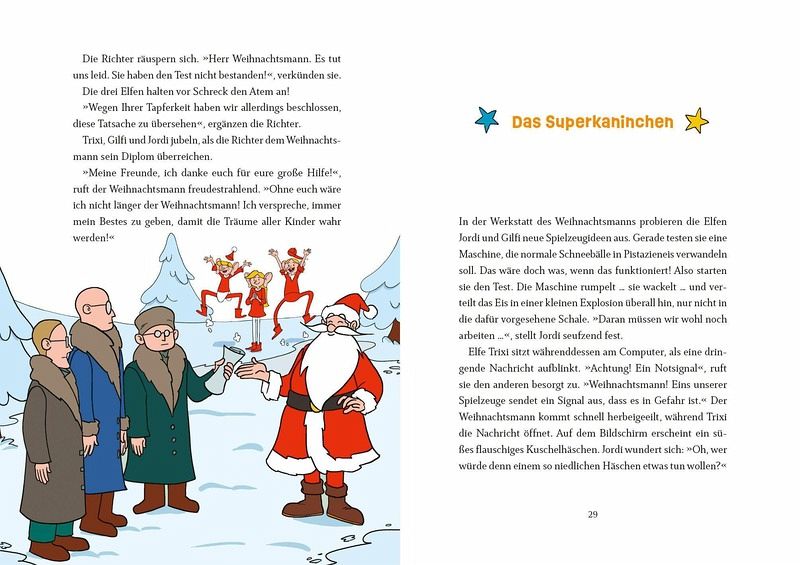 Bald ist Weihnachten! Für den Weihnachtsmann und seine drei Elfen bedeutet das viel Arbeit. Fleißig lesen sie die Weihnachtspost und erfinden neue Spielsachen. Denn jedes Kind soll genau das bekommen, was es sich wünscht. Aber der fiese Grantelbart und sein Gehilfe Gugor denken sich ständig Pläne aus, um Weihnachten zu ruinieren: sie ruinieren die Geschenkmaschine, entführen die Elfen und mischen sich in die Weihnachtsmann-Prüfung ein. Und das ist erst der Anfang! Werden zu Weihnachten trotzdem alle Kinder ihre Geschenke bekommen?