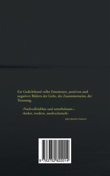 Ein Gedichtband voller Emotionen, positiven und negativen Bildern der Liebe, des Zusammenseins, der Trennung. 100 Seiten nachvollziehbarer, moderner Lyrik, in der man sich als Leser nicht nur einmal selbst wieder entdeckt.