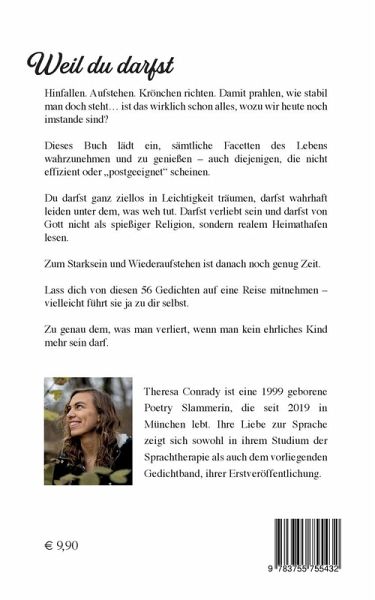 Hinfallen. Aufstehen. Krönchen richten. Damit prahlen, wie stabil man doch steht... ist das wirklich schon alles, wozu wir heute noch imstande sind?Dieses Buch lädt ein, sämtliche Facetten des Lebens wahrzunehmen und zu genießen... auch diejenigen, die nicht effizient oder für Posts geeignet scheinen.Du darfst ganz ziellos in Leichtigkeit träumen, darfst wahrhaft leiden unter dem, was weh tut. Darfst verliebt sein und darfst von Gott nicht als spießiger Religion, sondern realem Heimathafen lesen.Zum Starksein und Wiederaufstehen ist danach noch genug Zeit.Lass dich von diesen 56 Gedichten auf eine Reise mitnehmen - vielleicht führt sie ja zu dir selbst.Zu genau dem, was man verliert, wenn man kein ehrliches Kind mehr sein darf.