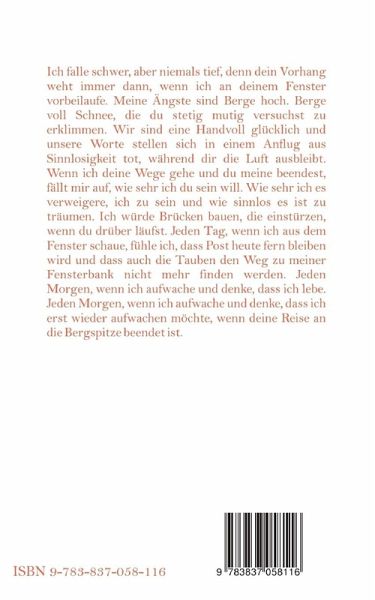 Getrieben von der unbegreiflichen Schönheit eines Moments, von den fesselnden Sackgassen eines Leids und dem Drang, das Leben radikal zu leben, entstand dieses Buch. Es ist wie eine Tür, welche durch einen Spalt einen Streifen Licht freilässt. Dieses Buch erzählt von dem Versuch diese Tür weiter zu öffnen, um das Dunkel mit Licht zu fluten.