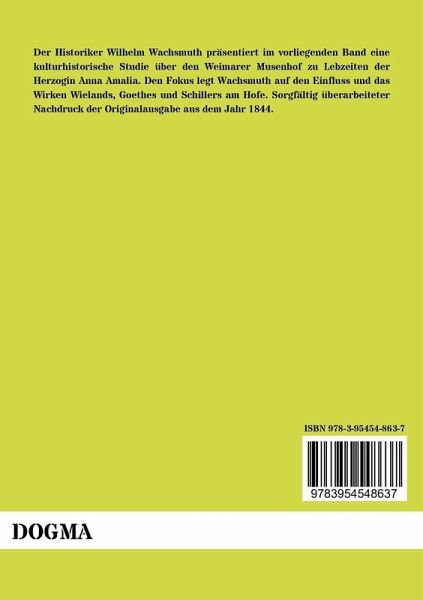 Der Historiker Wilhelm Wachsmuth präsentiert im vorliegenden Band eine kulturhistorische Studie über den Weimarer Musenhof zu Lebzeiten der Herzogin Anna Amalia. Den Fokus legt Wachsmuth auf den Einfluss und das Wirken Wielands, Goethes und Schillers am Hofe. Sorgfältig überarbeiteter Nachdruck der Originalausgabe aus dem Jahr 1844.