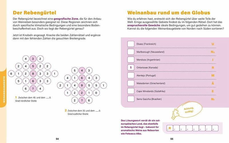 - Von Trollinger bis Tempranillo: geschmackvolle Rätsel zu Weinherstellung, Anbaugebieten, Rebsorten, Spitzenweinen, Weinverkostung & Co.