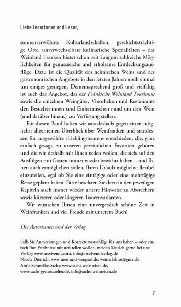 Mit mehr als 12 Rad- und Wandertouren von erfahrenen Gästeführern, die ihre schönsten Erlebnisse und liebsten Weinorte mit den Lesern teilen. Traditionelle und innovative Weingüter und Restaurants entdecken - mit ausgewählten Einkehr-, Einkaufs- und VerkostungstippsKultur-, Natur- und Freizeittipps für alle JahreszeitenMit Basiswissen zu Weinkultur und unterhaltsamem Quiz zu regionalen SpezialitätenAnsprechende und praktische Gestaltung: mit zahlreichen Farbfotos, Streckenkarten sowie übersichtlichen Infos zu Tourenverlauf und An- undAbreise mit ÖPNVMIT AUSFLÜGEN IN DIE SCHÖNSTEN FRÄNKISCHEN WEINREGIONEN u. a. nach Michelau, Weigenheim, Marktbreit, Iphofen, Castell,Sommerach, Volkach, Sommerhausen, Obereisenheim, Schwanfeld, Würzburg, Retzstadt, Thüngersheim u. Bürgstadt.
