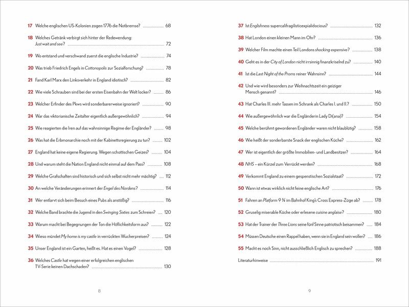 Ich liebe England bzw. Großbritannien und habe mich daher sehr gefreut, dieses Buch lesen zu dürfen. Das Cover gefällt mir und das Buch liegt gut in der Hand. Doch leider wurden meine Erwartungen nicht erfüllt. Aufgrund des Titels und der Art der Fragestellungen bin ich von einem humorvollen Werk ausgegangen. Das ist jedoch so gut wie gar nicht der Fall. Vielmehr wird oft sehr weit ausgeholt (z.B. bis ins 12. Jahrhundert und früher) und dann werden relativ humorfrei Fakten präsentiert. Ich weiß, ein Buch dieser Art muss nicht witzig sein, aber das Thema bietet das finde ich geradezu an und es würde den Lesegenuss, zumindest meinen, deutlich erhöhen, wenn ich dabei schmunzeln, kichern oder auch mal laut lachen kann. Das fehlt mir hier völlig. Ich komme mir ein bisschen vor, als würde ich in einem Schulbuch lesen. Das mag auch seine Fans haben, ganz klar. Menschen, die gern pure Zahlen, Daten, Fakten haben und Infos einfach nur der Infos wegen, die werden damit sicherlich gut zurechtkommen. Ich fand die meisten Fragestellungen gewollt witzig formuliert, deren Beantwortung dann aber sehr dröge und vom Stil her irgendwie überhaupt nicht zueinander passend. Einige Wörter und Namen sind im Text in rot gedruckt, der Sinn dahinter erschließt sich mir nicht, ist wohl eine rein optische Entscheidung gewesen. Und die vielen ebenfalls rot gedruckten englischen Begriffe hätte es für meinen Geschmack auch nicht haben müssen. Ich vergebe 2,5 Sterne, runde aber auf 3 auf, da ich halbe Sterne total doof finde. Die Richtung geht aber eindeutig zu 2,5. Schade.