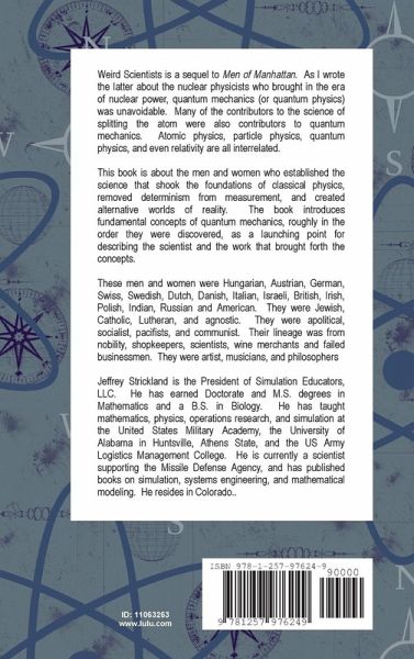 Weird Scientists is a sequel to Men of Manhattan. As I wrote the latter about the nuclear physicists who brought in the era of nuclear power, quantum mechanics (or quantum physics) was unavoidable. Many of the contributors to the science of splitting the atom were also contributors to quantum mechanics. Atomic physics, particle physics, quantum physics, and even relativity are all interrelated. This book is about the men and women who established the science that shook the foundations of classical physics, removed determinism from measurement, and created alternative worlds of reality. The book introduces fundamental concepts of quantum mechanics, roughly in the order they were discovered, as a launching point for describing the scientist and the work that brought forth the concepts.