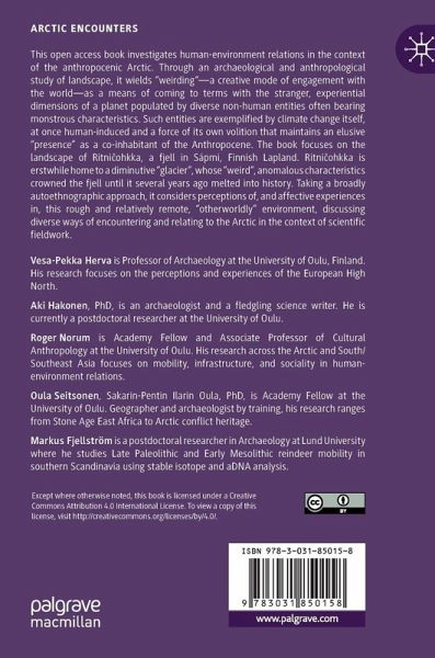 This open access book investigates human-environment relations in the context of the anthropocenic Arctic. Through an archaeological and anthropological study of landscape, it wields "weirding" - a creative mode of engagement with the world - as a means of coming to terms with the stranger, experiential dimensions of a planet populated by diverse non-human entities often bearing monstrous characteristics. Such entities are exemplified by climate change itself, at once human-induced and a force of its own volition that maintains an elusive "presence" as a co-inhabitant of the Anthropocene. The book focuses on the landscape of Ritnicohkka, a fjell in Sápmi, Finnish Lapland. Ritnicohkka is erstwhile home to a diminutive "glacier", whose "weird", anomalous characteristics crowned the fjell until it several years ago melted into history. Taking a broadly autoethnographic approach, it considers perceptions of, and affective experiences in, this rough and relatively remote, "otherworldly" environment, discussing diverse ways of encountering and relating to the Arctic in the context of scientific fieldwork.