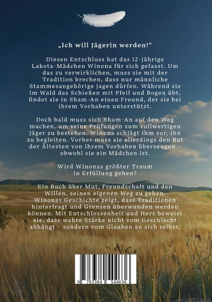 "Ich will Jägerin werden!"Diesen Entschluss hat das 12-jährige Lakota-Mädchen Winona für sich gefasst. Um das zu verwirklichen, muss sie mit der Tradition brechen, dass nur männliche Stammesangehörige jagen dürfen. Während sie im Wald das Schießen mit Pfeil und Bogen übt, findet sie in Sham-An einen Freund, der sie bei ihrem Vorhaben unterstützt. Bald muss Sham-An sich auf den Weg machen, um seine Prüfungen zum vollwertigen Jäger zu bestehen. Winona beschließt, ihn zu begleiten. Vorher muss sie allerdings den Rat der Ältesten von ihrem Vorhaben überzeugen - obwohl sie ein Mädchen ist.Schließlich machen sich die beiden Freunde gemeinsam auf den Weg, um einen neuen Namen zu erhalten, der sie als Jäger auszeichnet. Werden sie die Gefahren, die sie erwarten, erfolgreich überstehen? Und wird Winonas größter Traum wahr?Ein Buch über Mut, Freundschaft und den Willen, seinen eigenen Weg zu gehen.Winonas Geschichte zeigt, dass Traditionen hinterfragt und Grenzen überwunden werden können. Mit Entschlossenheit und Herz beweist sie, dass wahre Stärke nicht vom Geschlecht abhängt - sondern vom Glauben an sich selbst.
