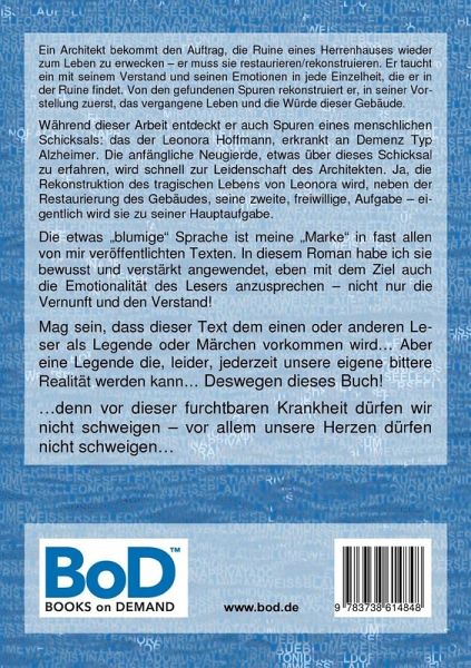 Ein Architekt bekommt den Auftrag, die Ruine eines Herrenhauses wieder zum Leben zu erwecken - er muss sie restaurieren/rekonstruieren. Er taucht ein mit seinem Verstand und seinen Emotionen in jede Einzelheit, die er in der Ruine findet. Von den gefundenen Spuren rekonstruiert er, in seiner Vorstellung zuerst, das vergangene Leben und die Würde dieser Gebäude.Während dieser Arbeit entdeckt er auch Spuren eines menschlichen Schicksals: das der Leonora Hoffmann, erkrankt an Demenz Typ Alzheimer. Die anfängliche Neugierde, etwas über dieses Schicksal zu erfahren, wird schnell zur Leidenschaft des Architekten. Ja, die Re-konstruktion des tragischen Lebens von Leonora wird, neben der Restaurierung des Gebäudes, seine zweite, freiwillige, Aufgabe - eigentlich wird sie zu seiner Hauptaufgabe.